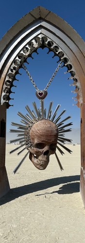 Organic study #4—This enormous and beautiful piece of art is by Las Vegas artist Luis Varela-Rico. It's a skull made from stacked pieces of wood and hung in a metal archway. From the artist: “The piece uses historical and cultural references to remind people how beautiful we can be if we base our behavior from a place of love instead of greed or fear.”